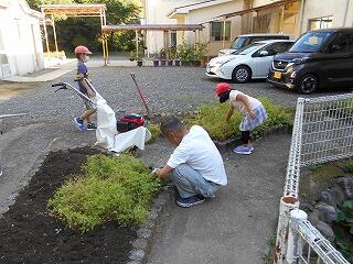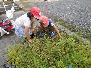ちょっとした時間をつかって、子どもたちは花壇の草抜きをしています。