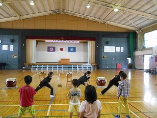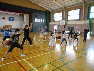 放課後、体育館から、元気なかけ声と力強い太鼓の音が、こだまとなって聞こえてきます。