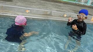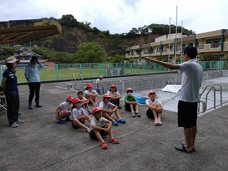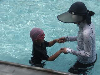 水温は、朝からすでに30℃超え。しかしながら、水の中は、やっぱり気持ちよく感じているようで、精いっぱいチャレンジする姿が見られました。