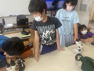 5月23日(月)、今日は顕微鏡で、モンシロチョウのたまごと、誕生したばかりの幼虫を観察しました。