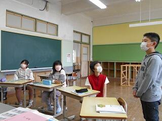 お話の後、6年生児童は、「どうしたら世界が平和に暮らせるようになるのか、一生懸命考えていきたい。」と感想を述べました。