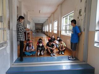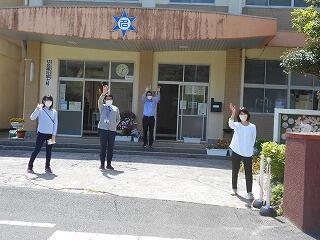 先生たちも笑顔で見送ります。明日まで家庭訪問のため、放課後子ども教室はありません。