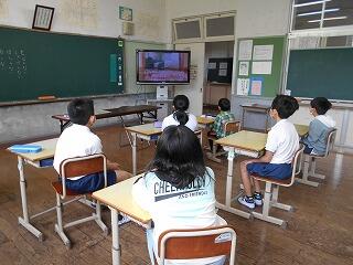 まずは、DVDを活用し、避難について、担任からのそれぞれ説明があり、真剣に話を聴く、子どもたちの姿が見られました。