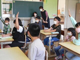 ちょうどこの日は、ALT訪問もあり、2名の先生でご指導いただきました。外国語科と外国語活動に学習について、子ども達は、毎時間楽しいこと話しており、この日が来るのをとても楽しみにしています。