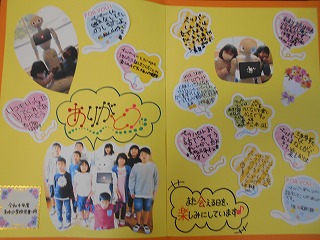 みんなの感謝の気持ちを込めて書いた寄せ書きの色紙をプレゼントしました。アメリカに帰っても、きっと名水小学校でのことや子ども達のことは忘れないことでしょう。わたしたちもロナン先生のことはいつまでも忘れません。
