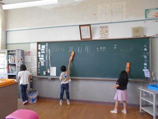 帰りの会後のお片付けのようす。