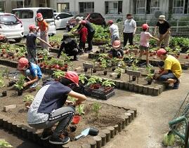 名水小学校は、なんと、一人一鉢ならぬ、一人一花壇です。1年生から4年生までは、花壇を3等分した一つ分を、6年生は、2等分した一つ分を自分の花壇として、花の苗を植え、今日からお世話をしていきます。立派なネームプレートも作っていただきました。花壇整備等もありがとうござました。