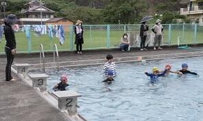 子ども達は、水泳学習の成果を発表しました。今年度は、水慣れを中心にということもあり、十分な練習はできませんでしたが、それぞれの伸びを見せてくれました。
