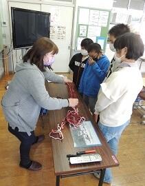 「ものつくり教室」では、職業能力開発協会の田上様のご協力のもと、上原畳店社長の上原様に、畳製作体験でのご指導をいただきました。