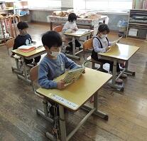読み聞かせは、今回も姫田さんです。「わすれもの」と「ウミガメ」のお話でした。前回に引き続き、お話に引き込まれている子どもたちの姿が大変印象的でした。