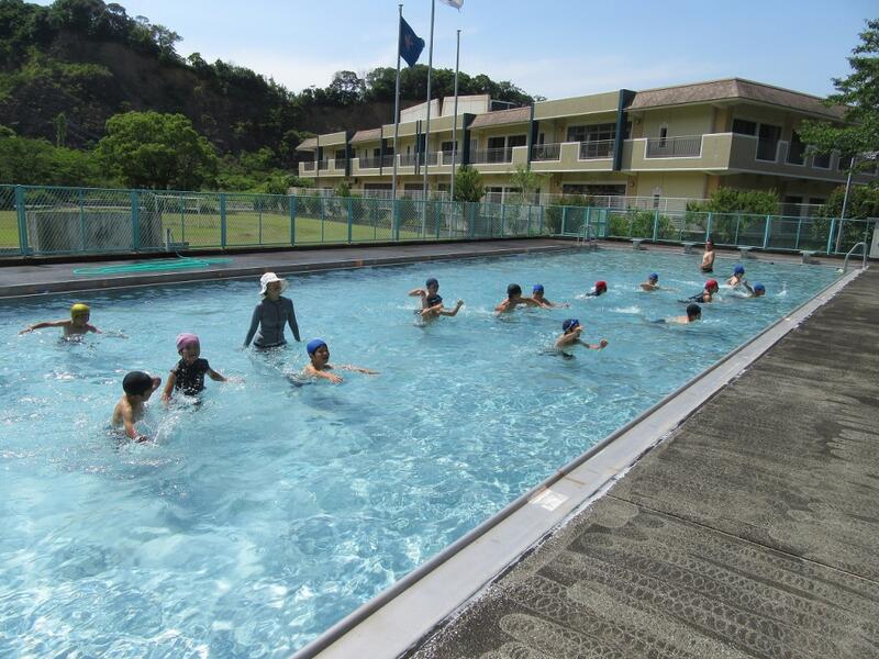 今日は、昨日の雨もあがり、3~6年生は水泳の授業を行うことができました。最初に、けのびなどの基本的な動きの練習をしたあと、どれだけ泳げるかをチェックしました。先生たちが見守る中、一生懸命手と足を動かし、泳いでいました。すでに25m以上泳げる児童もいました。これからの練習を通して、1mでも長く泳げるようになってくれることを期待します。