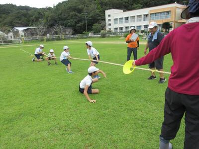 暑さが心配でしたが、曇りになって気温が下がったので運動場で徒競走・団技の練習を行いました。