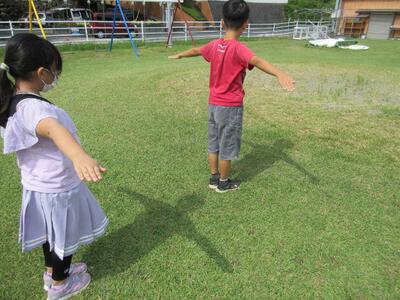 3年理科「かげと太陽」かげふみ遊びをして遊びました。
