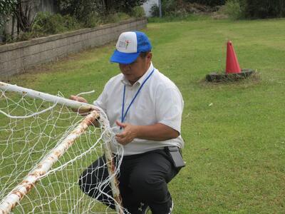 校長先生があたらしいサッカーゴールのネットを張ってくださいました。