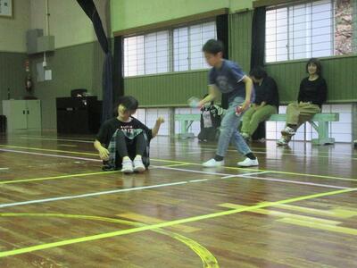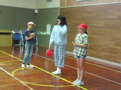 参観後、地域の方も参加して、グラウンドゴルフ大会が行われました。雨天のため、今年も室内で実施です。