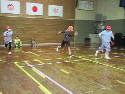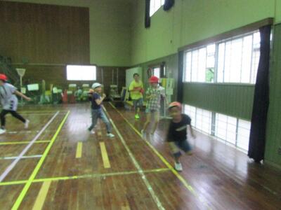 鬼のコール数分、鬼以外は壁の間を歩いて往復移動し、鬼の「24時!」のコールで鬼ごっこスタートという遊びです!?