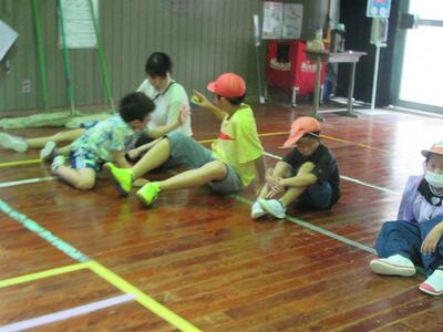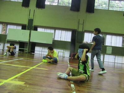体育館に移動して、上体起こし、長座体前屈、立ち幅跳び、反復横跳び、握力、シャトルランを行いました。