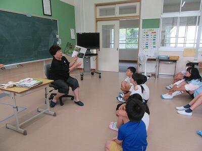今日は6月ということで、「ほたる」や「雨」に関係する絵本の読み聞かせをしていただきました。