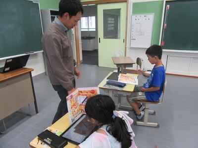 内外装だけでなく、子どもたちの授業のようすも見学されました。