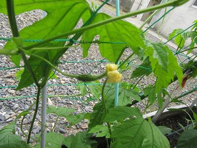 4年生はヒョウタンとヘチマを観察。ツルが伸び、草たけがぐんと伸び、本葉も増えています。