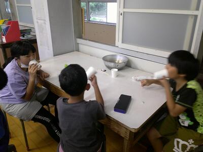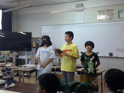 今日は科学クラブの日で6年生3人で計画・企画・運営、予備実験をしての実施でした。