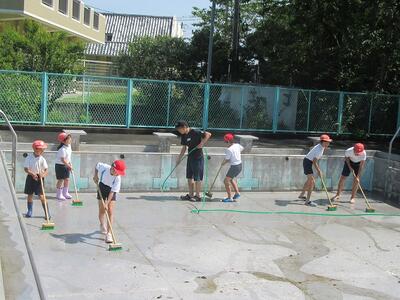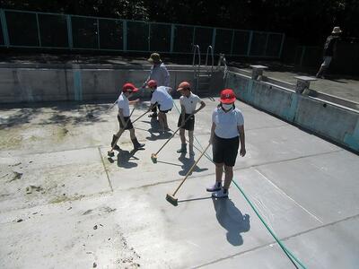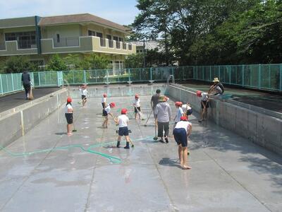 金曜日の予定でしたが晴れの1日をねらって、プール掃除をおこないました。