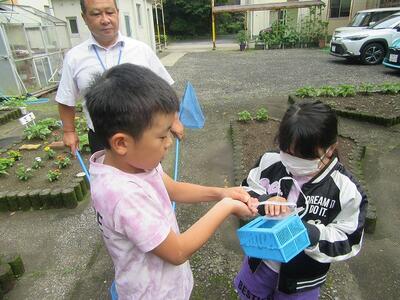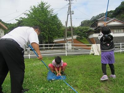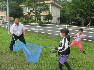 校長先生もいっしょにモンシロチョウを「ヒラヒラ作戦」でたくさん捕まえてくださいました。