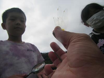 あっという間にモンシロチョウ、トンボ、カマキリ、バッタといろんなこん虫を捕まえることができました。