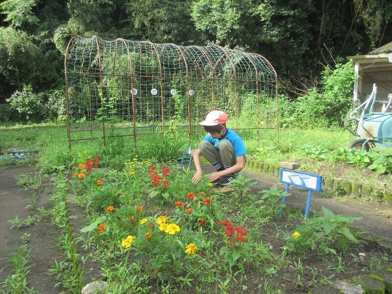 梅雨時期に降った雨で、花以外の草がたくさん生えています。