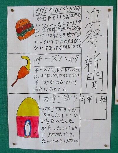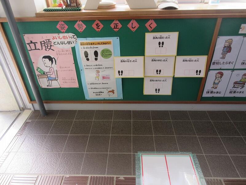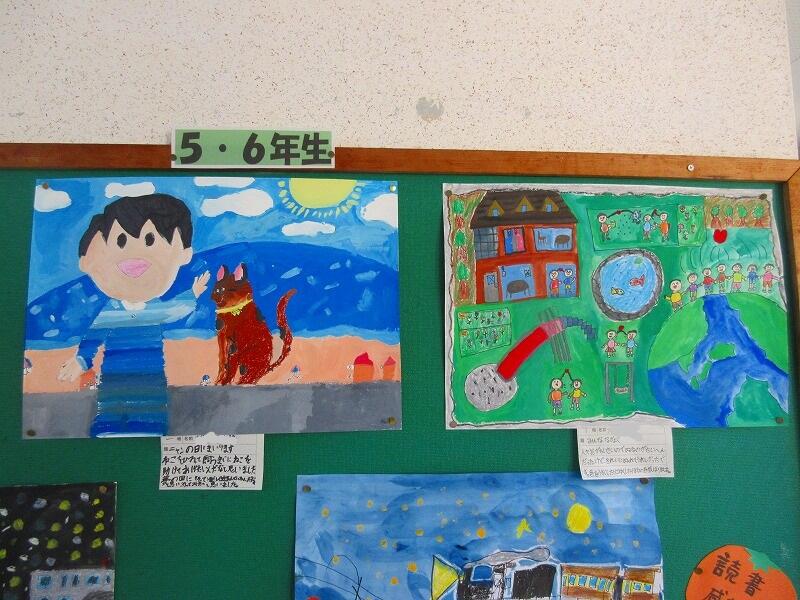 色とりどりの「かけ軸」は、2組の女子児童と先生が作りました。
