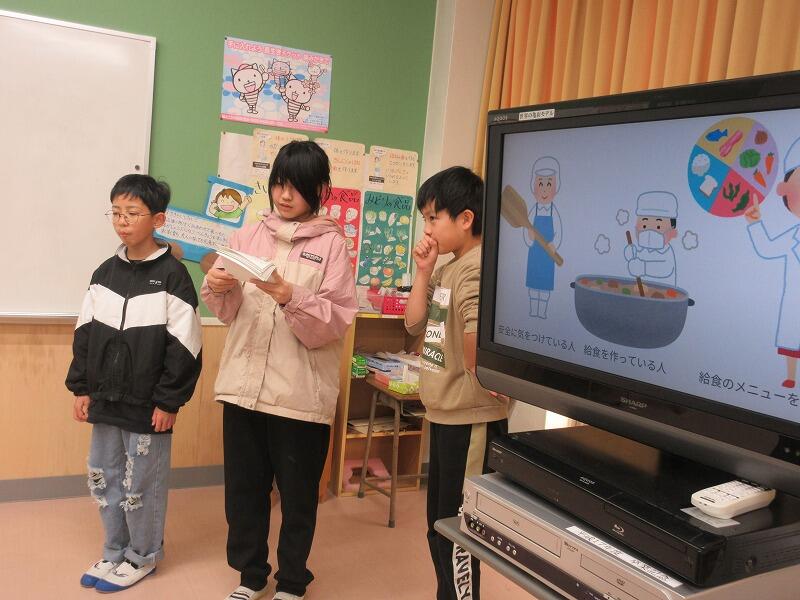 5・6年生が、給食に関するプレゼンテーションを行いました。