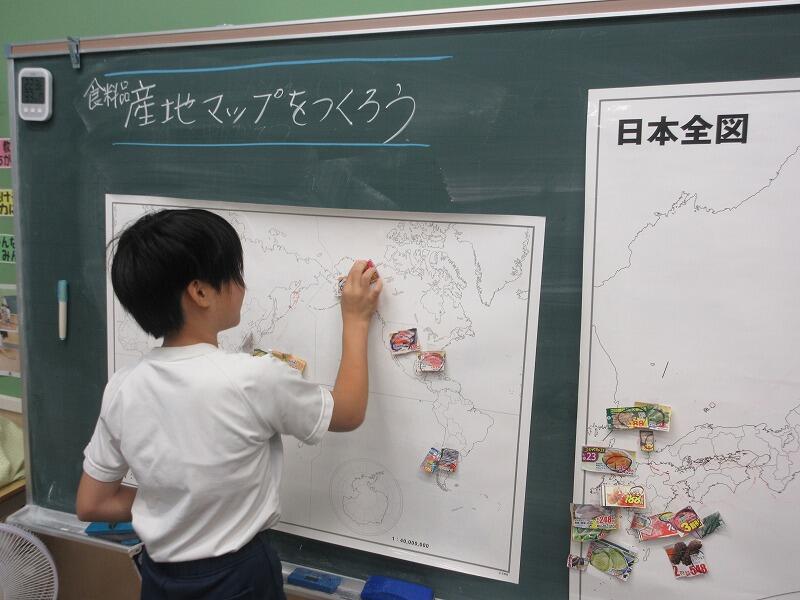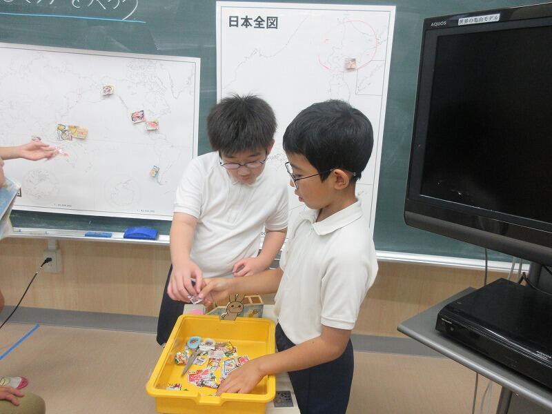社会科で学習した日本地図を活用した「双六屋」さんです。5年生が、店長さんです。