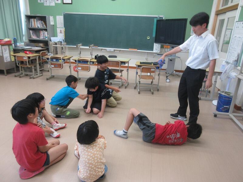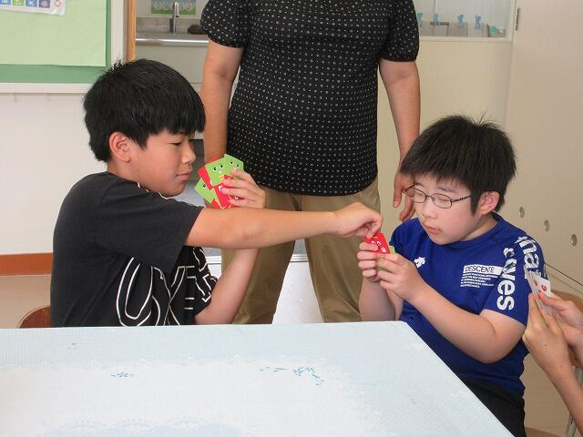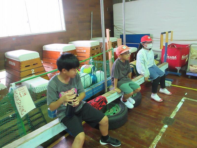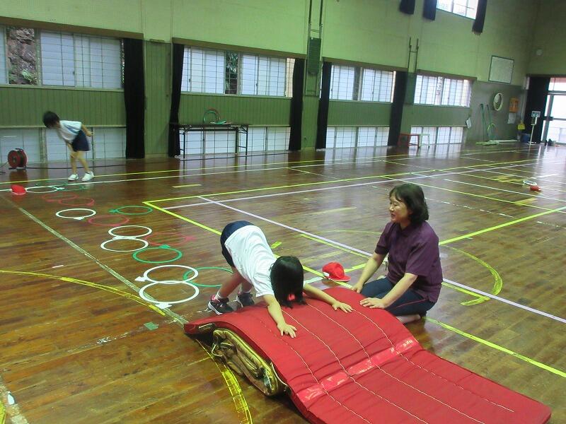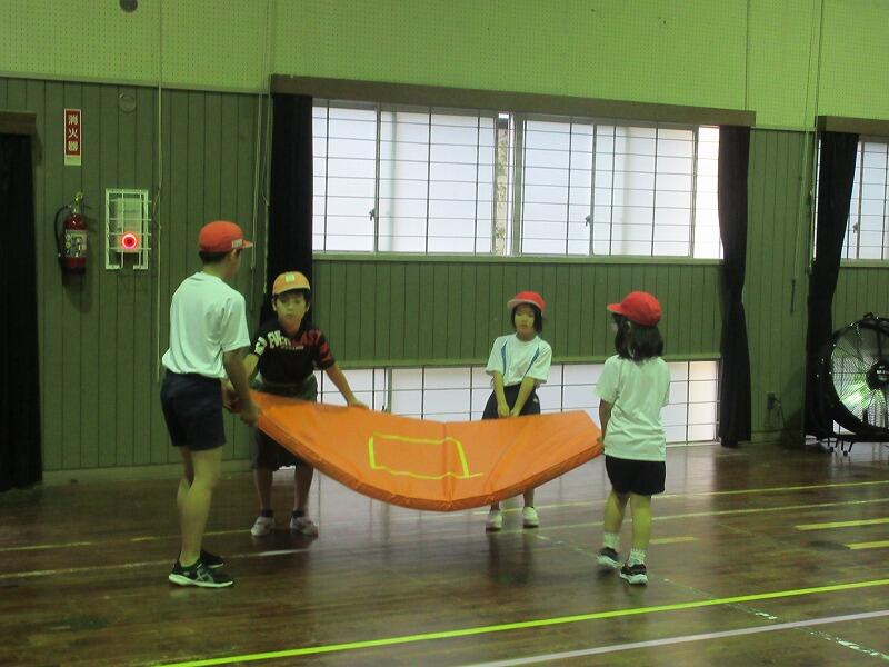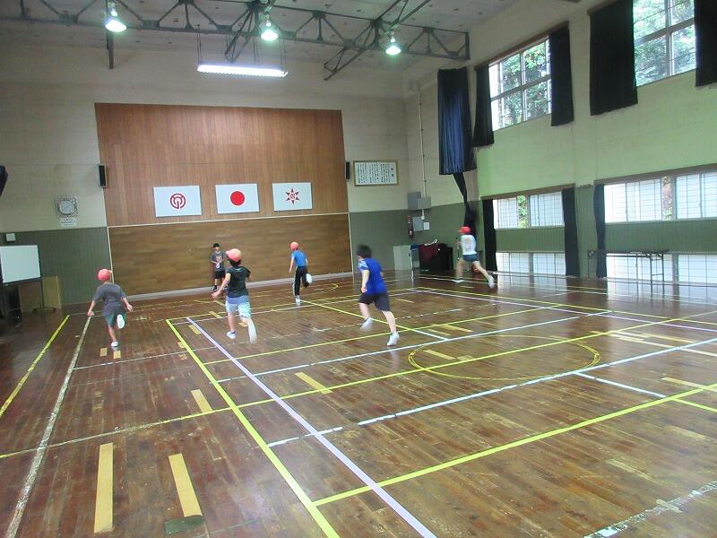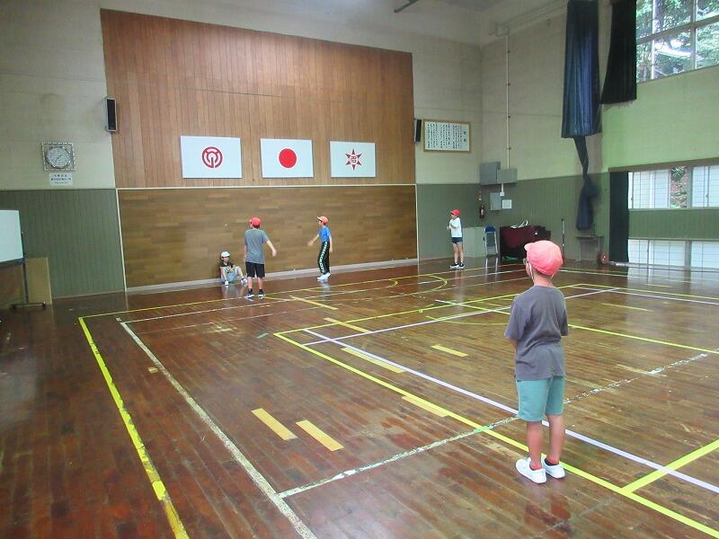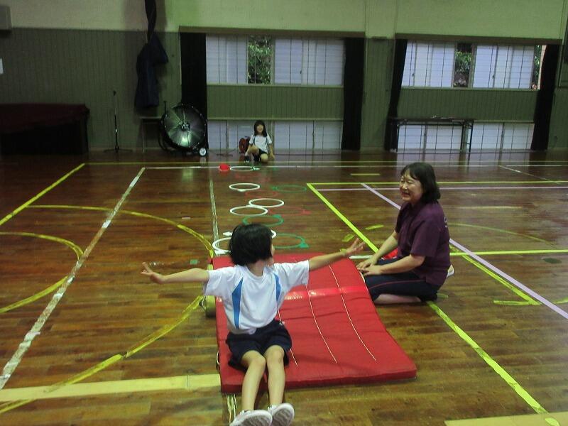 ボールを相手に投げたり、キャッチしたり、素早くすわったり、体と頭脳を使う運動を楽しそうに取り組んでいます。