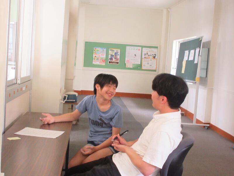 同じく、別の5年生と6年生の児童は、先生と対話を中心とした学習中です。