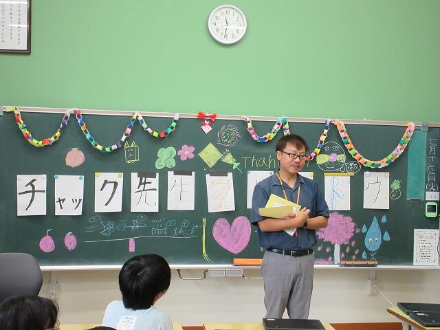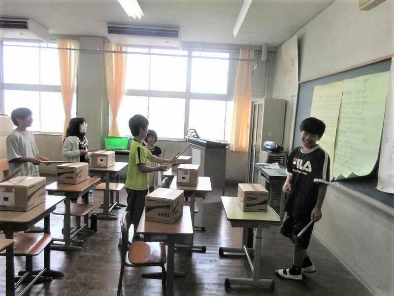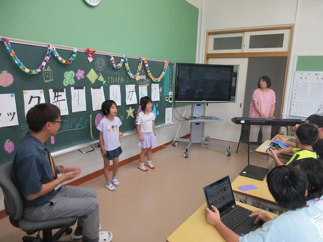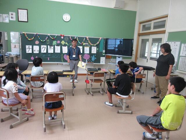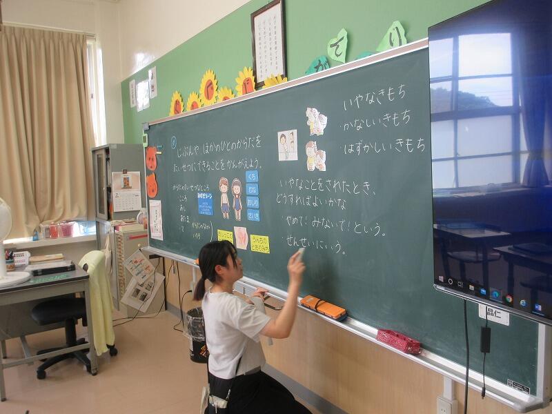 授業の様子です。4年生は、国語の授業を1年生と別の教室で行っています。