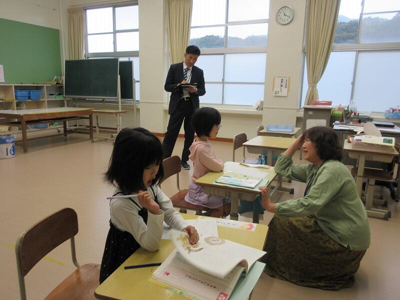先日、市の教育委員会と県の教育委員会の職員が来校し、授業の様子を見てくださいました。