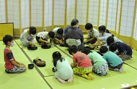 なかなか泡が立たない子どもも見られましたが、お師匠様の協力得ながら、何とかお茶点てることができました。その後一斉にお茶を飲み、初めて飲む子どももおり、「ちょっと苦かったけど、おいしかった。」という声も聞かれました。