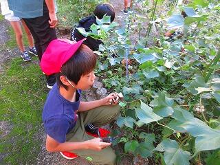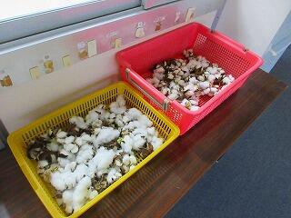 1学期に蒔いた種も、綿の実となりました。朝のボランティアの時間に収穫です。