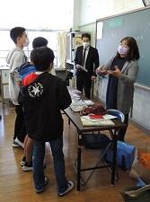 (株)マルワ水産は、漁だけでなく、獲れた魚を加工して、販売までする会社だというお話を聞き、子どもたちはビックリするリアクションが見られました。第6次産業とも言われるとのことでした。漁の仕方(深海底曳漁)を、縮小模型をもとに説明してくださったり、獲れた魚を写真で見せてくださったりしました。また、加工した実物やパンフレットをもとに加工や販売の様子についても説明してくださいました。、「できることをとにかくやってみると生活が潤ってくる。」ということもお話しいただきました。