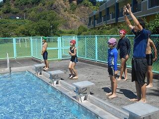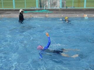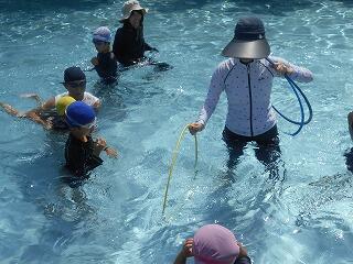 水温は、朝からすでに30℃超え。しかしながら、水の中は、やっぱり気持ちよく感じているようで、精いっぱいチャレンジする姿が見られました。