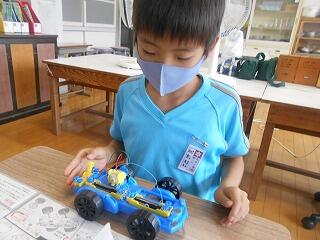 4年生は、電気のはたらきのテスト終了後、電気の車を試走しました。