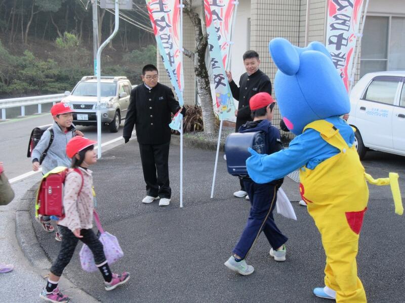 本校の卒業生である土々呂中学校の生徒4名と先生方2名が来校し、朝のあいさつ運動を行いました。一人の生徒は「トッチュウ」と呼ばれる着ぐるみを着て、小学生から注目されてました。登校してきた児童も中学生の元気なあいさつに刺激を受けて、いつもよりも増して「おはようございます」という声が大きく響いていました。先輩方の力はやっぱり大きいですね。