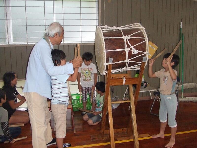 下校指導が終わると、児童は放課後教室に行きます。放課後教室では、宿題や宅習をしたあと、体育館や運動場で遊んだり、時期によっては伝統芸能を体験したりしています。今月は、太鼓の練習に励んでいます。放課後教室のサポーターの方のアドバイスを聞きながら、一生懸命ばちでリズムよく叩いていました。放課後教室では、先日はクサフグの産卵の観察も行っています。いろいろな体験させていただき、児童の健全育成につながっています。