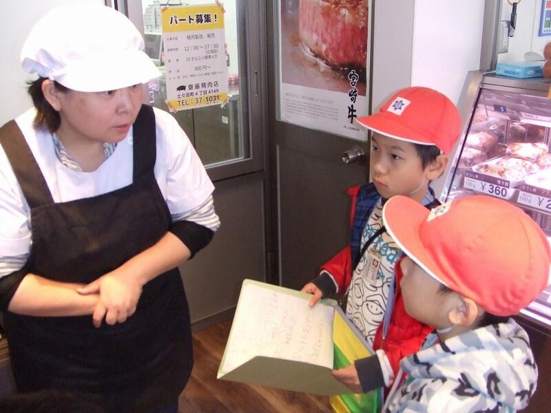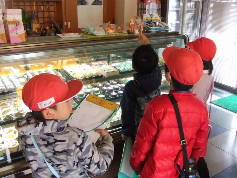 今日の生活科で、2年生が土々呂商店街のたんけんに行きました。お肉屋さんとお菓子屋さんを訪れて、店の人の話を聞いたり、インタビューをしたりしました。お肉屋さんでは、ソーセージが作られる様子に、とても関心を示していました。また、お菓子屋さんでは季節に合ったお菓子を並べていることを知り、店で働く人の工夫に気付くことがきました。自分たちの生活と店の人たちとの関わりについても発見することができたことと思います。