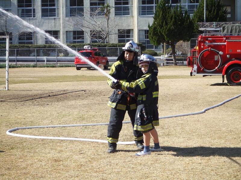 1月25日(木)に、火災を想定した避難訓練を行いました。5・6年教室が出火場所という想定で避難の指示を受けると、子どもたちは口にハンカチをあてて真剣な表情で避難をしました。火事はいつ起きるか分からない災害です。万が一のために、命を守る方法をしっかり身に付けてくれることを願います。避難後は、消防本部の方の話を聞いたり、放水の体験をさせていただきました。消防への関心が高まったことと思います。