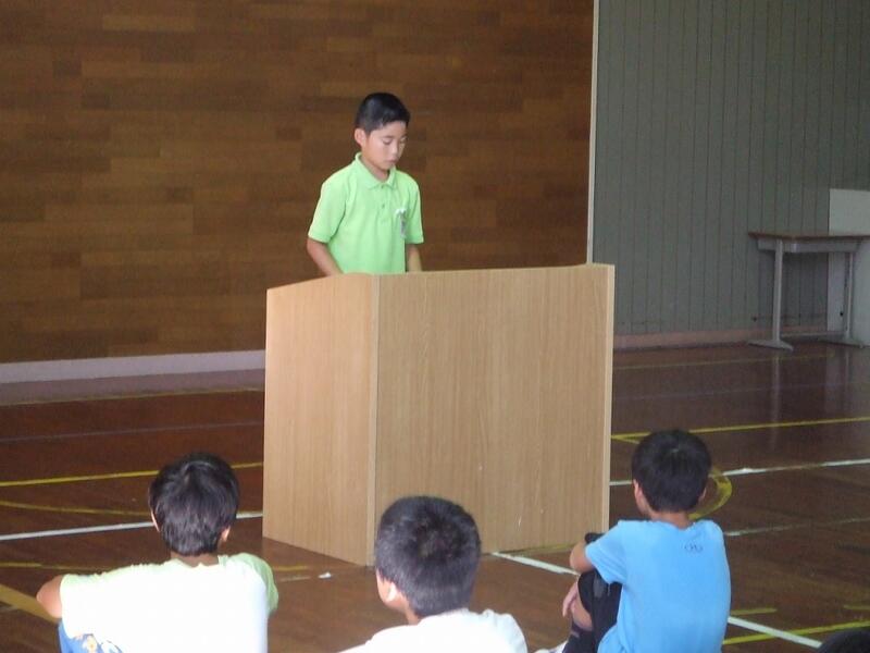 今日から2学期がスタートしました。1ケ月余りの長い夏休みでしたが、子どもたちは、事故もなく元気に過ごすことができました。始業式では、代表の児童が2学期に頑張りたいことを発表しました。これまでの生活を振り返り、よく考えて正しいと思うことを実践していくことの大切さを発表してくれました。校長先生からは、自分から進んで行動することの大切さ、特に分からないことは自分から尋ねる、自分で考えて行動する、相手の話をしっかり聞き、自分から理解することが大切ですとお話がありました。残暑が厳しい日でしたが、児童は真剣な表情で聞いていました。今学期も元気いっぱいに頑張ってほしいと思います。