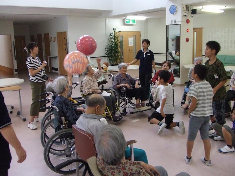 今日は、水明荘訪問を行いました。最初に、全員で歌を歌い、水明荘の方々に喜んでいただきました。その後は、4つのグループに分かれて、風船バレーやゲームなどふれあいを行いました。小学生の元気な姿を見て、水明荘の方々も大変喜んでいらっしゃいました。また、子どもたちも、優しい言葉かけをしながら、活動を楽しんでいました。この訪問を通して、相手の気持ちを考えて、接することの大切さを学んだことと思います。