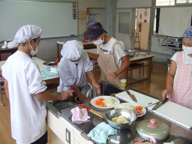 9月20日(木)に、5・6年生は家庭j科で調理実習を行いました。2つのグループに分かれて、栄養のバランスを考えたおかず作りを行いました。メニューは、はんぺんのはさみ揚げとポテトハンバーグです。包丁を使ったり、火を扱ったりしましたが、協力しながら安全に気をつけて作業を行いました。仕上がりは、色鮮やかな盛りつけとなり、子どもたちも満足して、試食を楽しんでいました。