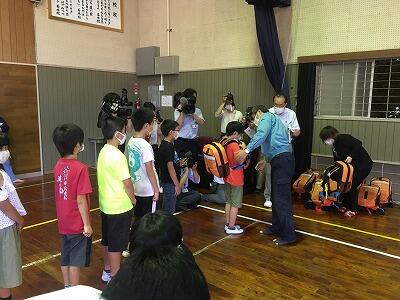 6月10日、給食配送してくださる(株)ミナミウラ様より「フロートパック」の寄贈がありました。津波や洪水などの災害時に、浮き続けることができます。また、軽食や懐中電灯等も入っており、避難時の対応もできます。寄贈の様子はメディアでも放送されました。