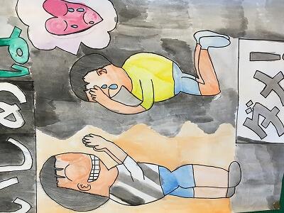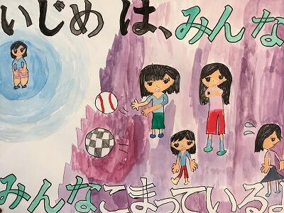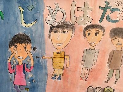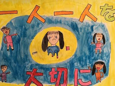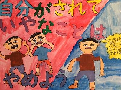 急に涼しくなってきて紅葉が山を彩っています。1・2年生は秋を見つけて、作品にしました。また、国語の学びを生かした作品づくりをしました。3・5年生は、いじめについて学び、いじめ防止のためのポスターを作成しました。